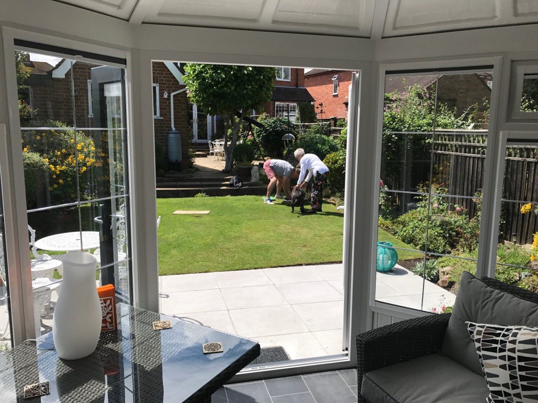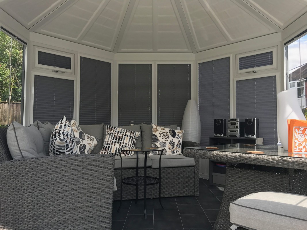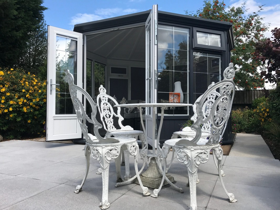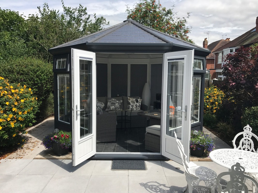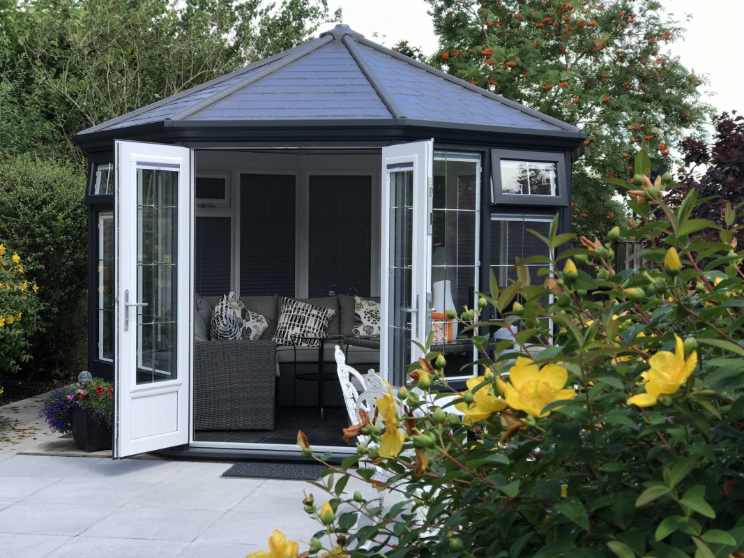 The Melbourne selected was finished in grey with a grey tile effect roof, the standard features including chrome Georgian bars, low level panels, opening windows and high security locking on the doors and windows.