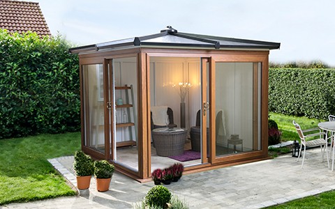 The Madison is a superb garden room especially designed to make the best use of those awkward corners in the garden. Retaining privacy towards the rear but then opening up at the front of the building allowing light to flood in and bringing you closer to the surroundings of your garden whilst in a sheltered, warm garden room. Opening the sliding patio doors allows a light summer breeze to flow around the Madison on a warm summers evening while you enjoy a glass of wine with friends and family