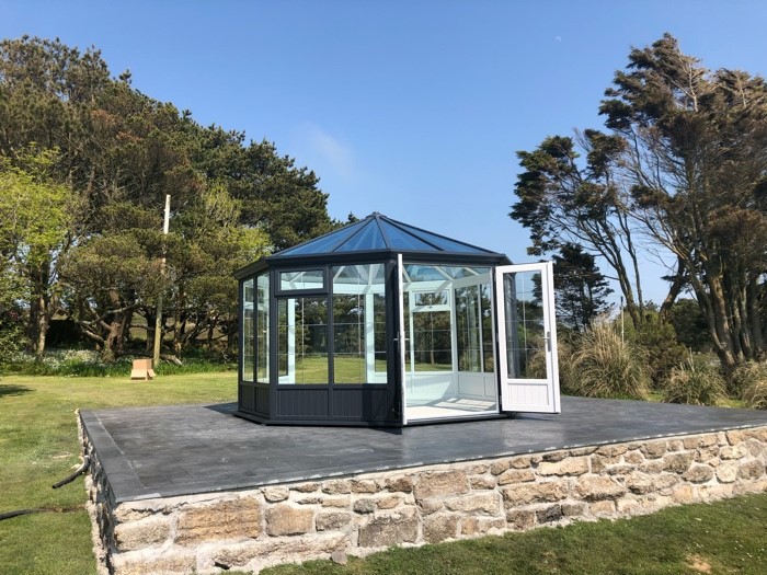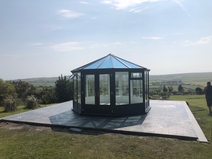We chose the stylish octagonal lines of the Melbourne, and decided to make a feature of it in our garden by setting it on a purpose built concrete base and we’re delighted with the result.
