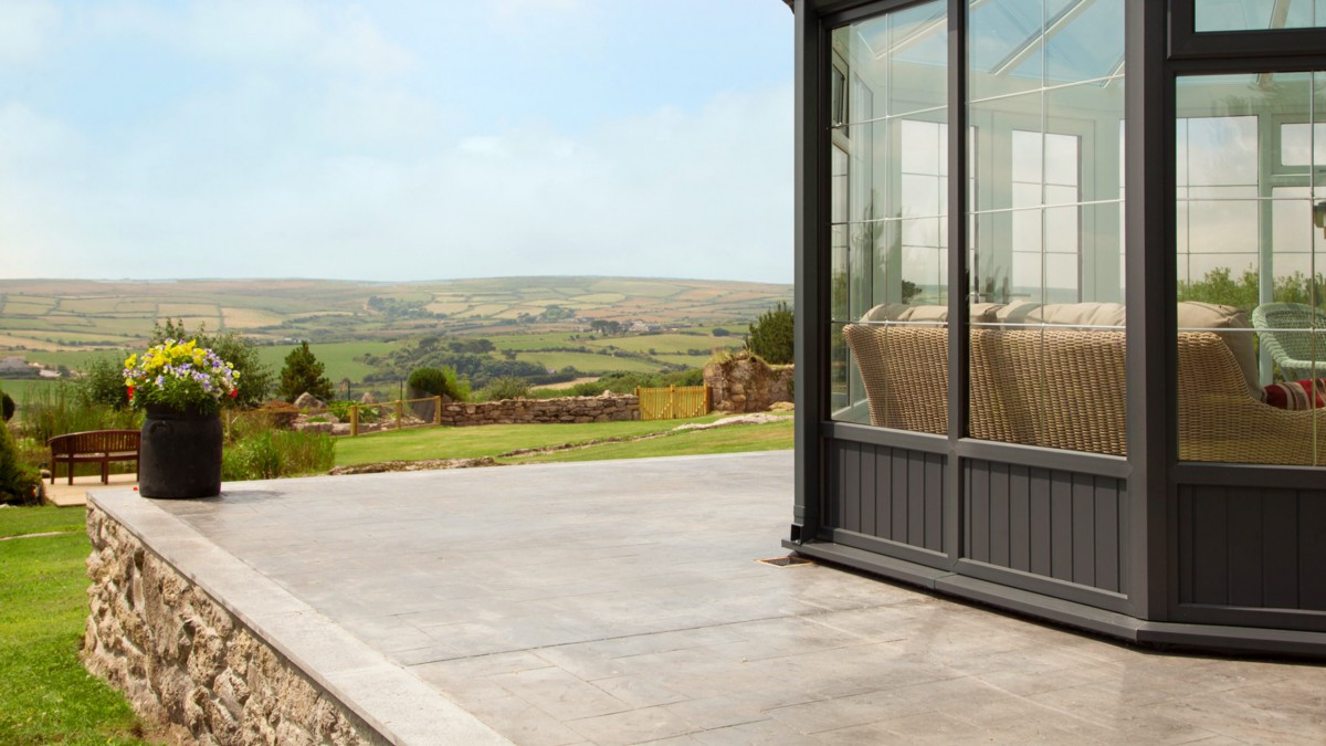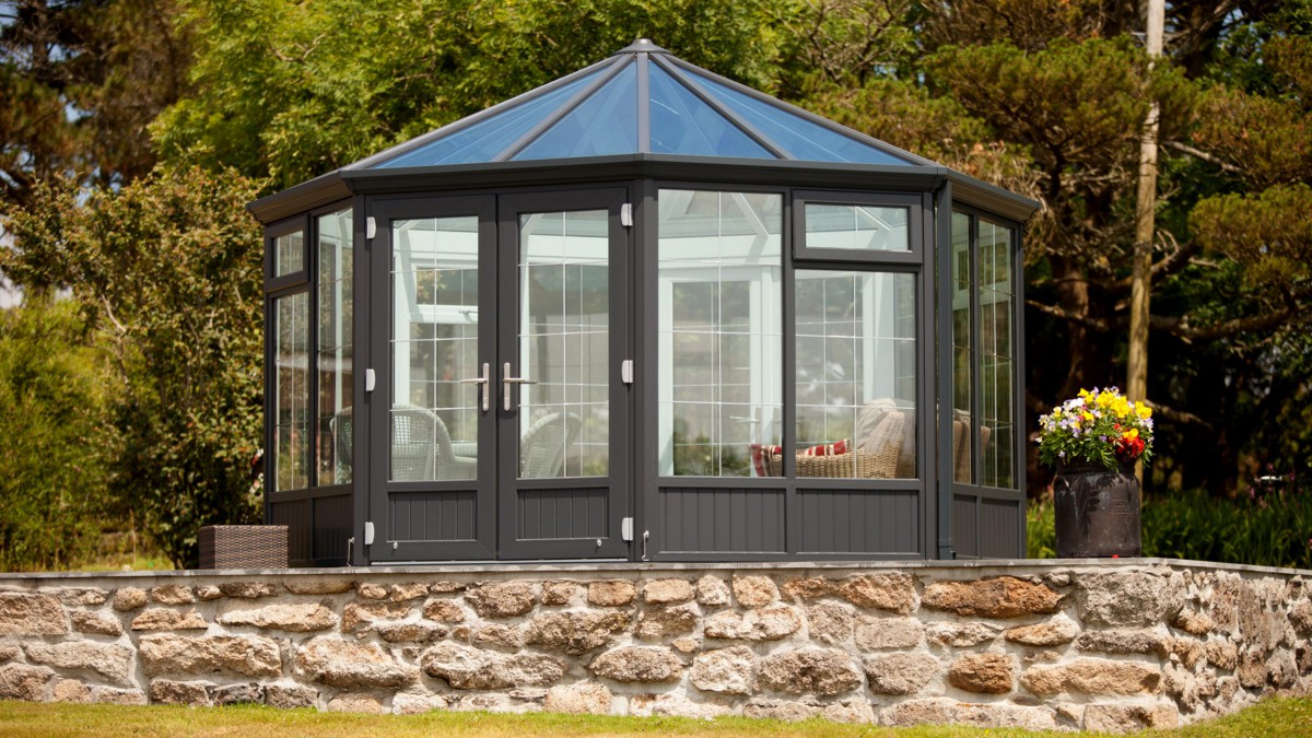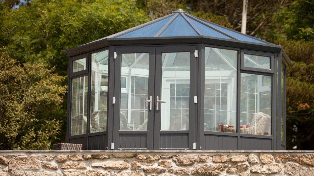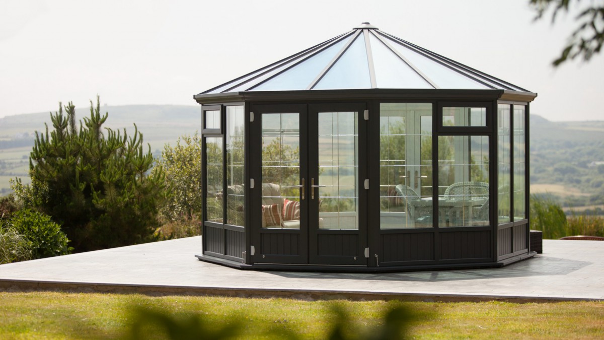 We can open both sets of twin doors set opposite one another on very warm days and it hasn’t got too hot, whereas when it’s windy or cooler we can close some, of all the doors, and regulate the temperature so we’re using it whatever the weather. As it’s big enough to house both a small dining table as well as casual seating, it’s suitable for a variety of uses.