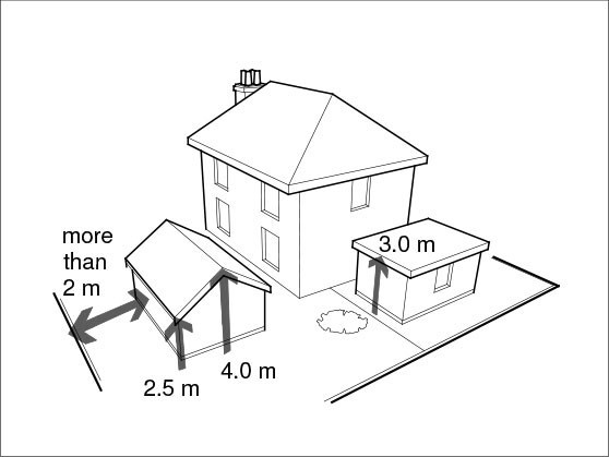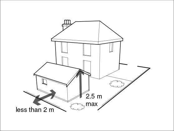 2 If the Nordic Garden Building is to be placed more than 2m from the boundary of the property, the single storey garden building can have a maximum eave height of 2.5m, and a maximum overall height of 4.0m for a dual-pitched roof (or 3.0m maximum overall height in any other instance).