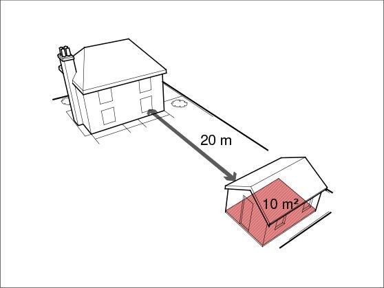 3 Your Nordic Garden Building CANNOT take up more than 50% of the area of land around your house, and you have to take into account any space taken up by other garden buildings.
