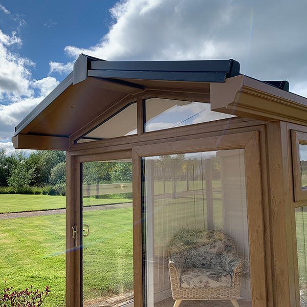 We offer 2 roof options on the Aspen, our standard Tile effect panel or the stunning Leka Systems slate effect roof. Both available in a selection of colours.