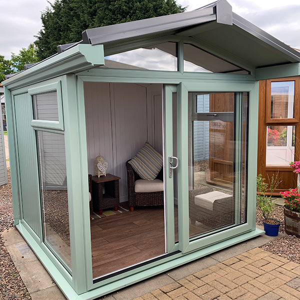 There is a choice of 4 external frame colours as standard, white, black, grey or golden oak but you have the option of upgrading the colour of your Nordic Garden Building to one of our carefully selected Premium Colours. Internally the building is always finished in white. The fantastic benefits include low maintenance and thermally efficient, our garden rooms will NOT rot or require painting and the will not shrink or expand like wood.